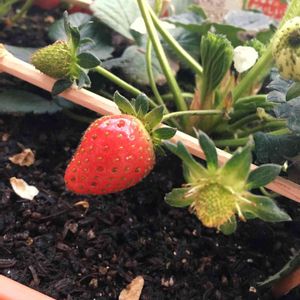 毎月15日はいちごの日🍓 初めてのいちご家庭栽培で なったイチゴは、 カレンベリーは、3個 ドルチェベリーは、5個 でした〜😂😂 この苗からまた採れるのかしら? ココヤシファイバーで被っていたのですが、鳥かな結構持っていかれ地肌が見えてる💦鳥はイチゴには興味がなかったようで、食べられませんでした😆🍓 カレンベリーからランナーが幾つか出てきたので、ポットに固定してみました😋