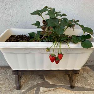 ガーデニング始めたばかりのときに思い余って植えたイチゴ類。 今だったら、イチゴもバコパも選ばないけど。 葉ばかりが生い茂り、花が咲いても実が大きくならず。 日照の問題かな? イチゴポット、素焼きのが欲しかったな。