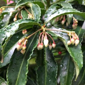 🌿 マユミとマンリョウ 🌿 雨が降り続いてますね。 グリーン色のマユミの実。秋にはピンク色に色付き、可愛い〜ですよ。 マンリョウの花がたわわ。 またまた、秋には赤い可愛い💕❤️実が付きます。