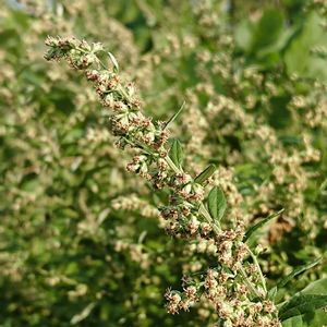 蓬(ヨモギ) キク科ヨモギ属の多年草。山野にふつうに生える。地下茎を伸ばして殖える。根生葉や下部の葉は花の頃は枯れる。茎葉は長さ6〜12㎝、幅4〜8㎝で羽状に深裂する。裂片は2〜4対あり、縁には鋸歯がある。表面は緑色で、裏面は綿毛が密生して灰白色。花期は9~10月。茎の先に大きな円錐花序を出し、小さな頭花を下向きに多数つける。頭花は直径1.5㎜、長さ約3㎜の長楕円状鐘形。果実は痩果。線形で灰白色。 名前の由来は多数の説がある。葉を乾燥して綿毛だけ集めたものが灸に使う艾(もぐさ)で、よく燃える意味から善燃草(よもぎ)とか、よく殖えるので四方草(よもぎ)、善萌草(よもぎ)という説など。春の香り高い若苗を草餅に入れるので餅草(モチグサ)の別名もある。また、『燃え草』が短縮したモグサはヨモギの葉の裏の毛を集めたもので伊吹山のものが良品。九州でフツというのは二日灸といって2月2日、8月2日に三里の灸穴に灸をすると効き目が倍になるという伝承からきている。 奈良時代から平安時代は、ヨモギの芳香が魔除けの力を持つと信じられていた。奈良時代には、男児が生まれたとき、蓬の矢で天地四方を射って健やかな成長を願った。端午の節句にはヨモギを屋根に葺き、蓬鬘(よもぎかずら💬蓬冠を頭髪にのせること)で邪気を祓った。草餅や灸の材料、蚊遣のために焚くとか、これら実用的な利用は中世から近世になってからである。合掌造りで知られる白川郷では、昔、発酵させて火薬の原料にしたという。子供の頃、葉を石で叩いて水中メガネに塗り、曇り止めとしても用いた。 出典『野に咲く花』『草木の種子と果実』『野草の名前 秋冬』『秋の野草』『薬草の呟き』