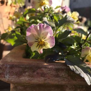 種からパンジー!咲きました♪ ビオラに比べるとゆっくりでした。 花が大きいだけに咲くまでにたくさんのパワーが必要なのかな? こちらはアネモネとクロッカスの球根鉢。みんなゆっくりゆっくり成長(ストップ?)中。寒さに負けず頑張って☃️