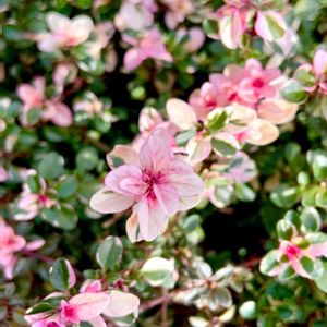 今 庭でいちばんキレイに発色している フォックスリータイム ピンク色の小さな花のような紅葉中の葉っぱ🍂💕 斑入りの葉っぱもお気に入りです🌿✨