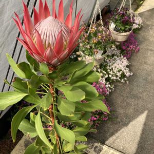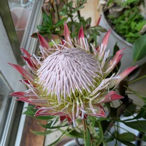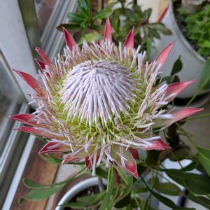 キングプロテア 出会って4年目、毎年、一度は咲いています。 初夏には外に出しています。