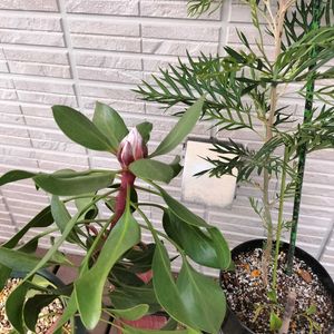 プロテアリトルプリンスが初めて咲いてくれました!🌷 花芽がまだ2つ控えてるので水切れしないように気をつけながら 開花までの成長を楽しみます😊
