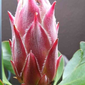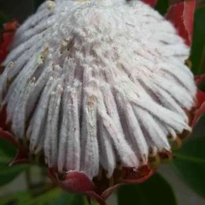 キングプロテア リトルプリンス2個目が開花寸前。 もけもけの頭状花序。