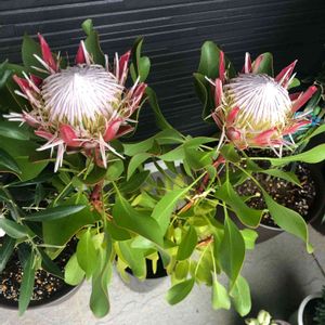 こんばんは😃 前々からお迎えしたかったキングプロテアさん🤗 ウチのベランダガーデンは今花が無いので 開花が楽しみ😆😆😆