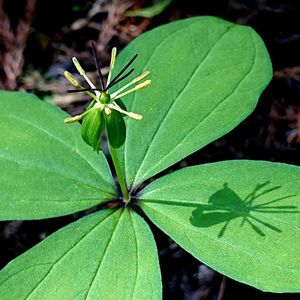 衝羽根草 つくばねそう ユリ科 ツクバネソウ属 草丈 15〜40cm 花期 5月〜8月 多年草 葉は茎の先端に4枚が輪生する。 車場ツクバネソウは葉が6〜8葉ある。 果実は球形て紫黒色に熟す。 2020.7.29.