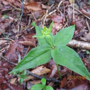 先にあげたエンレイソウの下の写真、全くの大間違いでした。この花は「ツクバネソウ」ユリ科では珍しい4数性の花です、まだ蕾😊 エンレイソウの葉は、3枚なんで何を間違ったのか?多分、おっ!赤ちゃんと思って撮ったイメージのまま思い込んでしまったようです😓 Lots thanks to 朱花さん