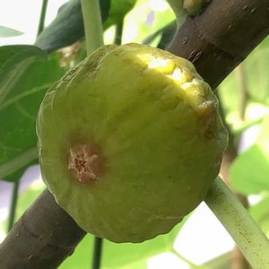 果実の日の当たるところがかなり色づいて全体が軟らかくなっていたので採って見ました 3年生のバローネの11個目の秋果になります 果実は26gとかなり小さくなりました 果実を切っている時にいちじくの甘い香りがしましたので期待しましたが、甘味はやや薄いものでした それでも果肉は軟らかく美味しくいただきました 少し過熟気味だったかも知れません 20251005収穫 20251005撮影