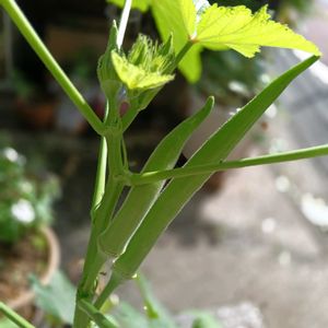 おはようございます。 種1袋 まいてちゃんと育ってくれたのは2株だけのオクラちゃん。