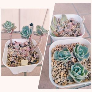 ☃💜ラブリーローズ💜☃ 5月5日 今日は急に思い立って多肉事に没頭した一日でした😊 まずはラブリーローズ🌹 葉挿しを数枚と、胴切りして植替えをしました💜 たくさん植替えしたのでボチボチUPしていきます💜