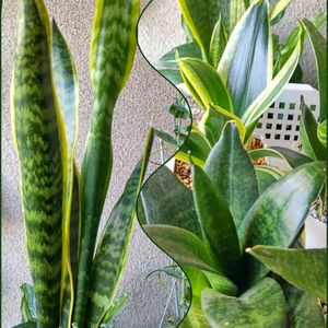 2021.07.20 柄が似た サンセベリアローレンティ&ポトスエンジョイを寄せ植え。 サンセベリアは魔除け・厄除けの効果があるといわれ、悪い陰の気を陽の気にするそうで、リビングの鬼門の方角に鎮座させてみました。 ポトスは、マイナスイオンを放出する植物らしいです。 最近、運気を上げるサンセベリアに興味深々です⤴️♡♡♡