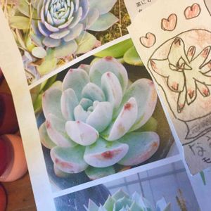 特徴は掴んでおるwww 爪がwww爪がwww 娘(7)一心不乱にエケベリア図鑑を見ながら、描いてる˚✧₊⁎❝᷀ົཽ≀ˍ̮ ❝᷀ົཽ⁎⁺˳✧༚