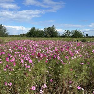 おはようございます☘️ ①②③ 週末、主人のランニングコースにあるコスモス畑に、主人は走り、私は自転車で行って来ました🌸🏃🚲🌸 お花はもう終わりに近づいている状態でしたが、青空とピンクがとてもきれいでした。 『自由にお取り下さい』の看板🪧を出して下さっている畑ですので、主人もお花摘みを楽しんでいました😉 ④お友達から『東京蚤の市』のお土産を頂きました✨とっても可愛くてコスモスと並べて飾っています 🌸🫙🌸