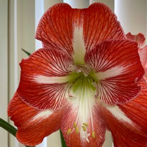 赤のアマリリスが咲きました❤️綺麗な模様を出していてすごく神秘的です。 アマリリス、ミネルバです。
