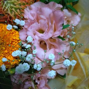 ・トルコギキョウ🩷 ・ピンクッション🧡 ・ミニバラ🟡 ・グロリオサ🟡 ・大きなマリーゴールド ・花束💐🎂🎉 娘からのプレゼント