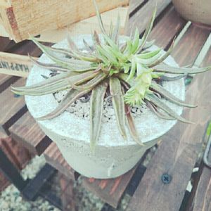 モルタル鉢の練習中です まだまだ下手くそだけどエキゾチカ植えてみました。植え替えの時にお粉がとれちゃいました…気をつけないとね