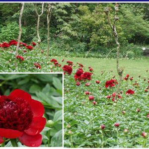 おはようございます シャクヤク園のお花です 真っ赤なを集めてみました 赤いシャクヤクの種類は多くありませんでした 今日も赤いシャクヤクのお花を見ていただきまして、ありがとうございました