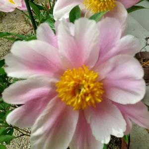 シャクヤクが満開となりました❣️ 昔から言う 立てば芍薬座れば牡丹 うちの庭では 牡丹の位置の方が高いので あまりピンとこないけど きっと芍薬のスラリとした草丈のことを 言っているのですね😊 門扉の近くを 牡丹にバトンタッチして 明るく照らしてくれます💕