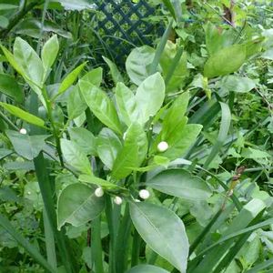 庭の柑橘、この花はスイートスプリング。 丸っこくてキュートな形。 あふれるほどたくさんの花をつけてくれますが できる実はまだちょい小ぶり。 摘果の仕方とか、ちゃんと勉強しなければ。