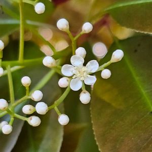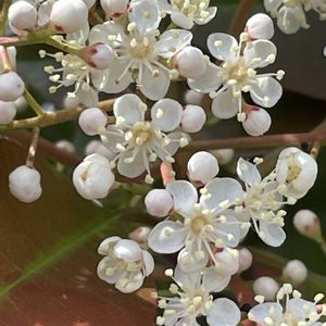 🌳木の花たち ベニカナメモチ(紅要黐) 法面の植栽 店舗入口付近にあり 車で通り過ぎながら おやっ?と見つけたベニカナメモチのお花 飛び出たシベがぽやぽや感 ° ✧ (*´ `*) ✧ ° 🏷️素敵な出会いに感謝 🏷️清楚な白花♡ (ちりめんうさぎさん主宰) 🏷純白マニア ☀️ *・゜゚・*:.。..。.:*・🌳✨'・* :.。..。.:*・゜゚・*