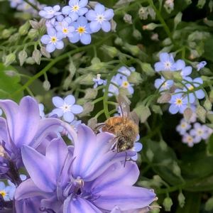花散歩で✨ 🩵💜🐝💖💗🤍❤️🌇♪ 1️⃣今日のお花✨ ワスレナグサ と ブルーベルと🐝 撮影4/26 2️⃣芍薬 3️⃣雪の下 4️⃣要黐 5️⃣夕陽 今日も 笑顔😄で 過ごせますように💐