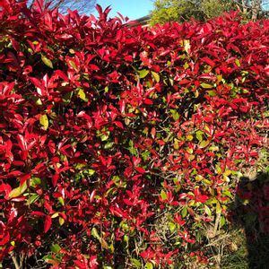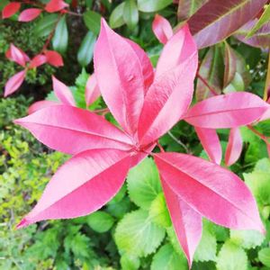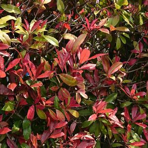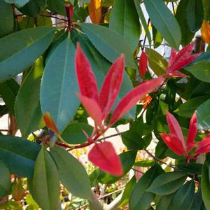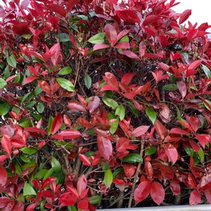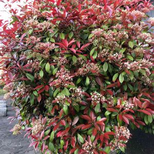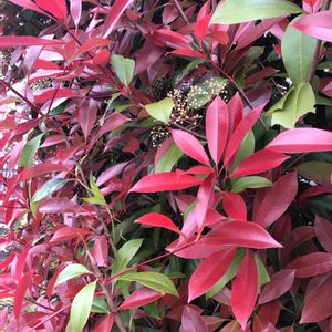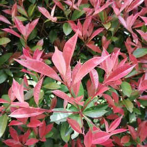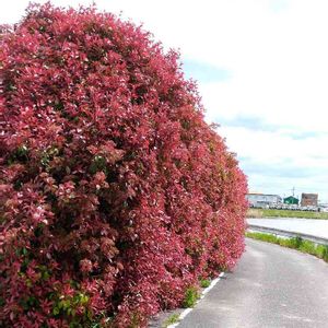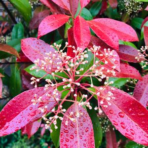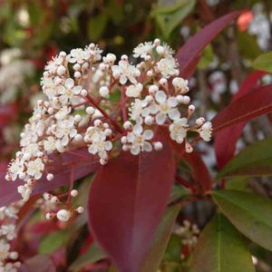 真っ赤な新芽が美しいレッドロビン。 もうすぐかわいい花が咲きます。