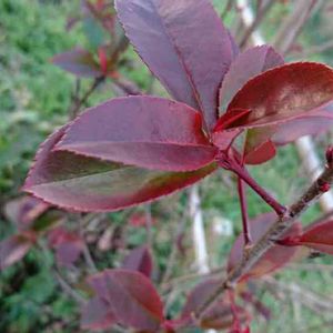 シキミのような緑の葉っぱから、また赤い葉っぱ?出てきている。 あなたは、だぁれ?
