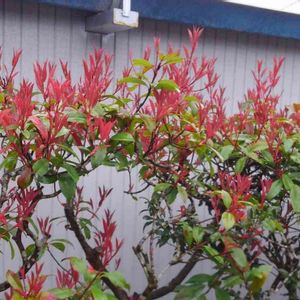真っ赤な新芽がとても良い感じ❣️ もうすぐ赤い葉っぱでおおわれますね! ベニカナメモチでいいのかな?