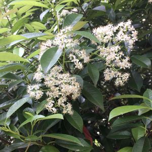ベニカナメモチの花芽 昨日の大雨が上がった朝の散歩で花芽が付いているのに気がつきました。図鑑で見ると花が咲いている写真があるのですが,ここの木はこれから咲くのだと分かりました。