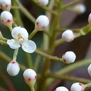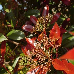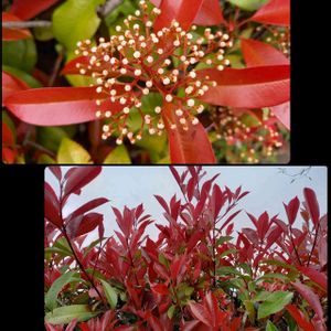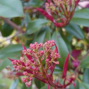 ベニカナメモチ 新芽🌱が赤い❤️ ツボミがつくと薄くなっちゃうかもと撮ったのが下の2枚 今は、沢山のツボミをつけてますよ🤗 バラ科カナメモチ属