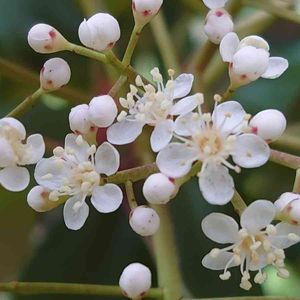旅は終わり日常に戻りました カナメモチの花が徐々に開いてきています