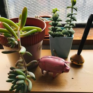 ワンちゃん、ネコちゃん🐱は、私のオリジナル作品で販売中す。頭と手が動かせますよ。手彫りで天然大理石で出来てます。 多肉植物🪴に囲まれてま〜す。