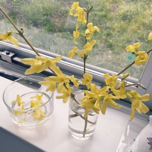 レンギョウの花 落ちた花もいっしょに🌼 北海道 寒いけど 春なんだよねぇ