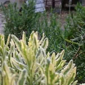 🌿 レースラベンダー とラベンダーメルロー🌿 昨年11月初旬にゲットしたラベンダー二種です。 レースラベンダーは花芽が付いてきました。まだまだ小さいですが、50センチ以上になるとの事。楽しみです。 ラベンダーメルローは斑入りの葉で、一年中葉の香りが楽しめて、嬉しいなぁ〜〜。
