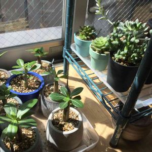 たまには全部の植物を載せてみよう。その7 ラスト! 日光欲しがりだけど、直射日光は嫌チーム。 ベランダの日陰スペースで生息中。 オベサちゃんは、縦に伸びてます。 銀手毬ちゃんは可愛くなくなりました。 トプシータービーは両手を広げて何かを催促してます。
