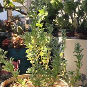 名前忘れたけど豆科の観葉植物に黄色いお花が咲きました🌼