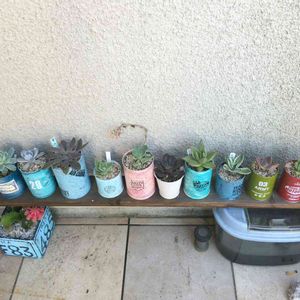 トランク型の鉢に寄せ植えしてたけど なかなか土が乾かないせいか どんどんダメになったので 解体。 七福神さん、また植え替え… こんな植え替えてばかりでかわいそうなので このまま定住させてあげたい💦