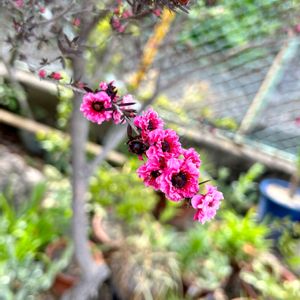 今日のお花🌸ギョリュウバイ 最初は寄せ植えに使った30cm程度の株が、今は樹高1.2mぐらいまで成長しました(´∀`) 別名:マヌカと呼ばれ、この花の蜜とミツバチ🐝によって、あのマヌカハニーが作られるそうですd(^_^o) 毎年可愛いお花を沢山つけてくれます (*^▽^*)