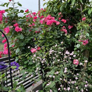 アーチの薄ピンク色のつるバラが咲き始めました❇️💮❇️🤗
