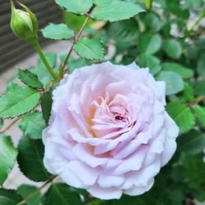 こんにちは🌸 雨上がりの日曜日☕️ 昨日の 雨の刺激で つぼみがいっせいに 咲き出したみたいで.. 華やかに 🌳🌸🌹 ①レイニーブルー 四季咲き (Rainy Blue 🇩🇪) 藤色 💜カップ咲き しなやかな樹勢に咲く花姿が 何とも美しい✨😍 ② クリスティアーナ 🪴つるばら (Christiana 🇩🇪) 淡ピンク色 カップ咲き 咲き始まりの美しさ..✨ これからの開花がとても 楽しみ💖🥰 💐どちらも娘から🧡 今年も 美しく咲いて ひと安心♡♡