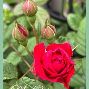 昨日は☔で肌寒い一日でしたが、今日は爽やかに晴れて気持ち良いです☀️🍃 ①蕾だった四季咲き大輪つるバラ・アンクルウォルターが開花しました💖 お花は大きめですが、花色とまぁるい形が可愛らしいです💞 ②鉢植えの真っ赤なミニ薔薇にも蕾が沢山❤️✨🌹