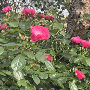 バラの季節🌹🌹✨ ①②地植えのつるバラ・アンクルウォルター🩷 大型のお花が沢山咲き始めました🎶 ③鉢植えのストロベリーアイス🍓🍨💞 ④鉢植えのトゥルー・グレース🩷 甘い香りがします💕 ⑤鉢植えの真っ赤なミニ薔薇🌹❤️ 小さい木に沢山のバラ🌹🌹🌹