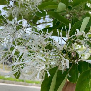 車窓からとても爽やかに揺れる花をつけて葉っぱの緑も優しい木発見! 調べてみると なんじゃもんじゃの木❣️ おもしろい✨