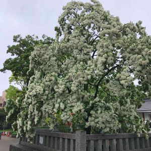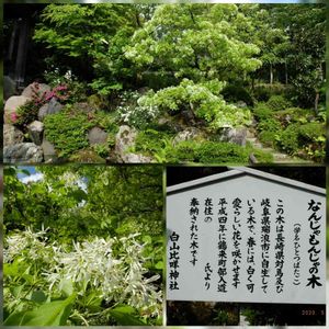 去年も投稿したなんじゃもんじゃの木 正式名称をヒトツバタゴといいます。 佐々木姓発祥と言われている地元の沙沙貴神社へ 今年はマスクをして観に行ってきました。 神社にお参りもして、1日も早い収束をお願いしました🙏🏻