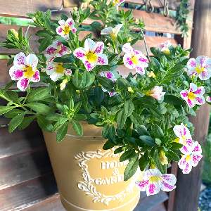 鉢の並べかえをしていて 咲いているのに気がつきました😁 どうしても 名前が思い出せません😅 名前を教えて下さい🙇