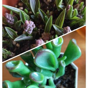 増えすぎて野に放たれた ツメレンゲ。 ぷくぷく元気に野生化してます。 ↘️は、勢力争いに負けつつある シマツルボ💦 何故かピンキーひょっこり😋