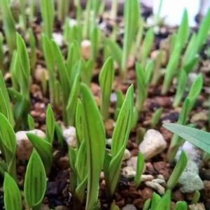 縞ツルボの葉と蕾が出てきた! 今年は初めて花が見れそう。