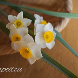 家の中でふんわりと甘い香りを放っているのは お正月に生けた床の間のロウバイとキッチンの片隅に挿した水仙の花 日当たりの良い庭先で太陽の方向に顔を向けて例年より少し早めに咲き出した水仙は部屋の中に入れた後次々と花開きました⸜( ´ ꒳ ` )⸝