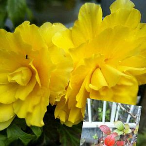 秋晴れの良い天気〜 キュンキュン乙女倶楽部 🔖令和小さい秋 球根ベゴニアまたまた咲いてます。 右下ブルーベリーの葉っぱ🍁🍁紅葉し始めました。